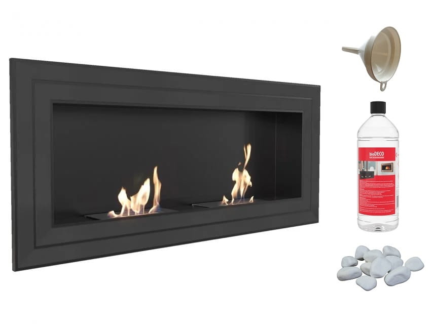 Biokominek Juliet 1500x650 czarny z dwoma biowkładkami z certyfikatem TÜV