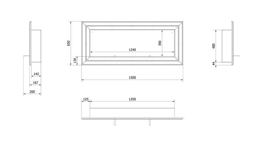 - indywidualna zabudowa: można zamontować we wnęce lub na specjalnie zbudowanym do tego celu elemencie dekoracyjnym wystającym ze ściany. Dylatacja: bezpieczna odległość od ściany (1,5 cm) pozwala na obieg powietrza wokół biokominka, bez dodatkowych listew montażowych.