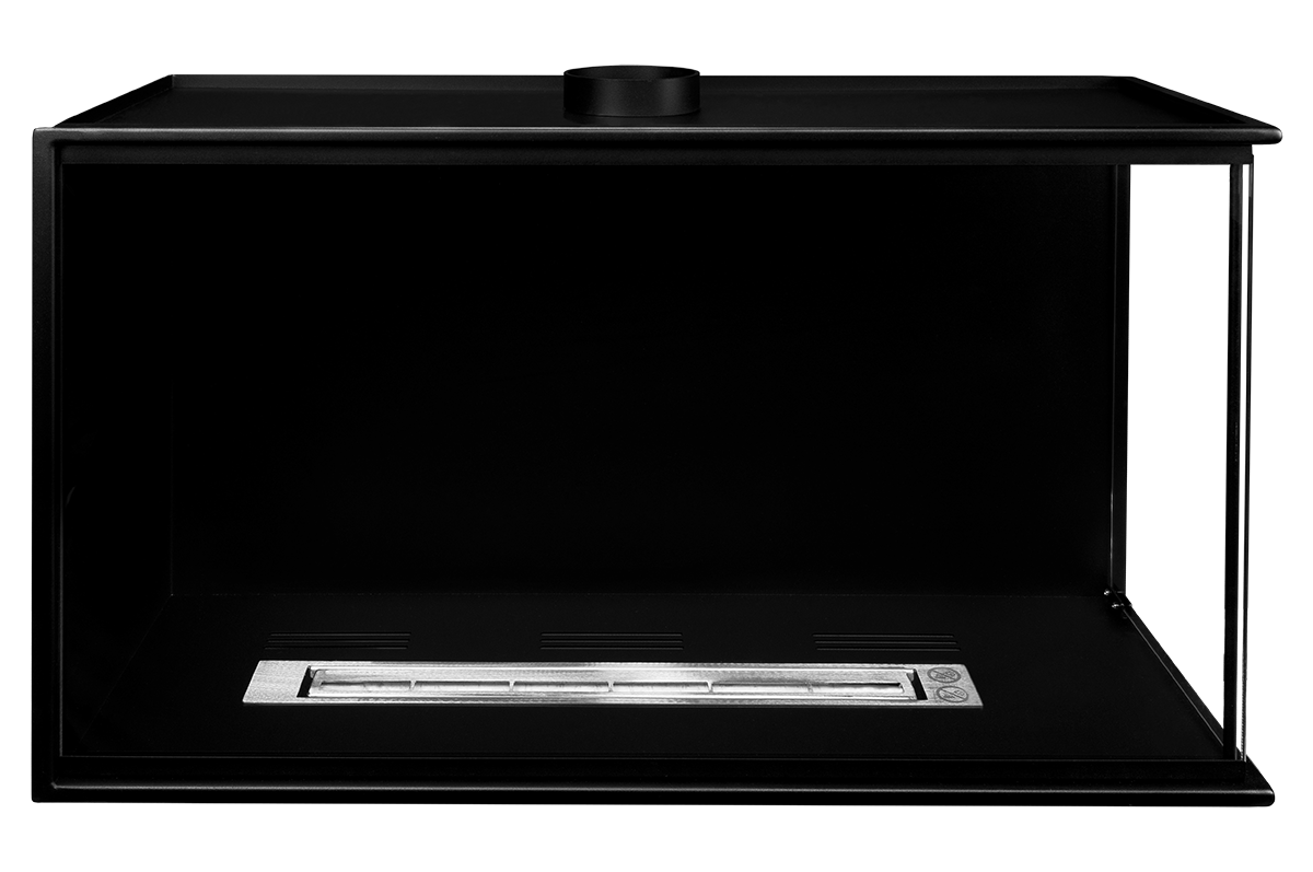 Biokominek narożny 80cm Prawy wykonany jest ze szwedzkiej stali lakierowanej proszkowo farbą termoodporną w kolorze czarny mat strukturalny. Grubość stali to aż 2mm co gwarantuje stabilność i trwałość konstrukcji.