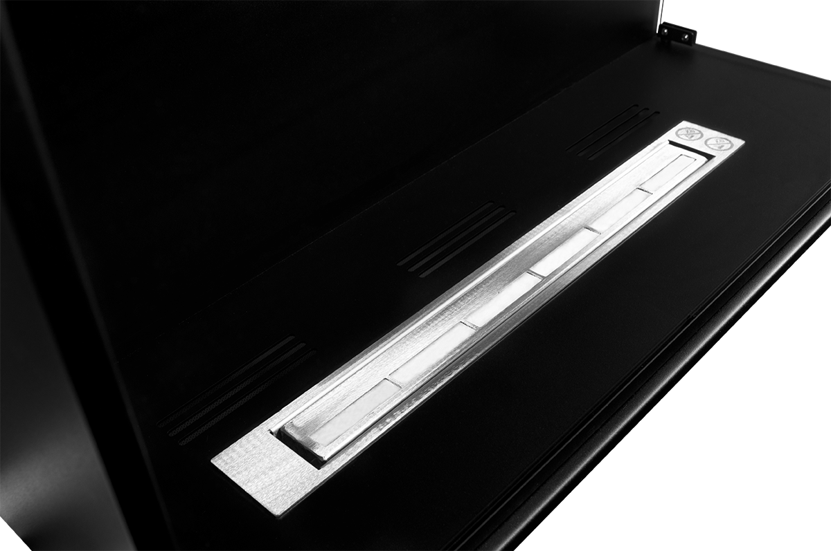 Wewnątrz zainstalowano jeden podłużny liniowy palnik wraz z wkładem chłonnym, posiadający certyfikat bezpieczeństwa TUV, o pojemności 0,7l.