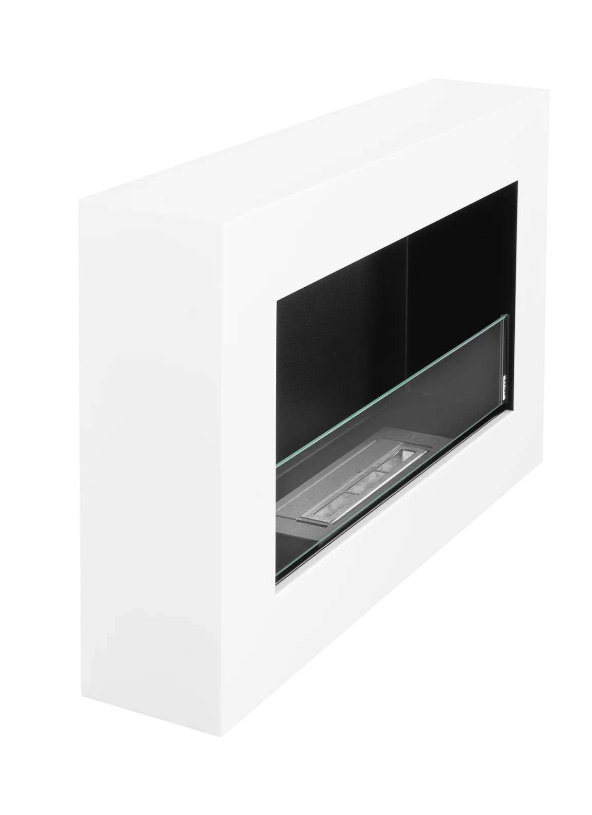 Biokominek wiszący 650x400 Box biały strukturalny mat z szybą