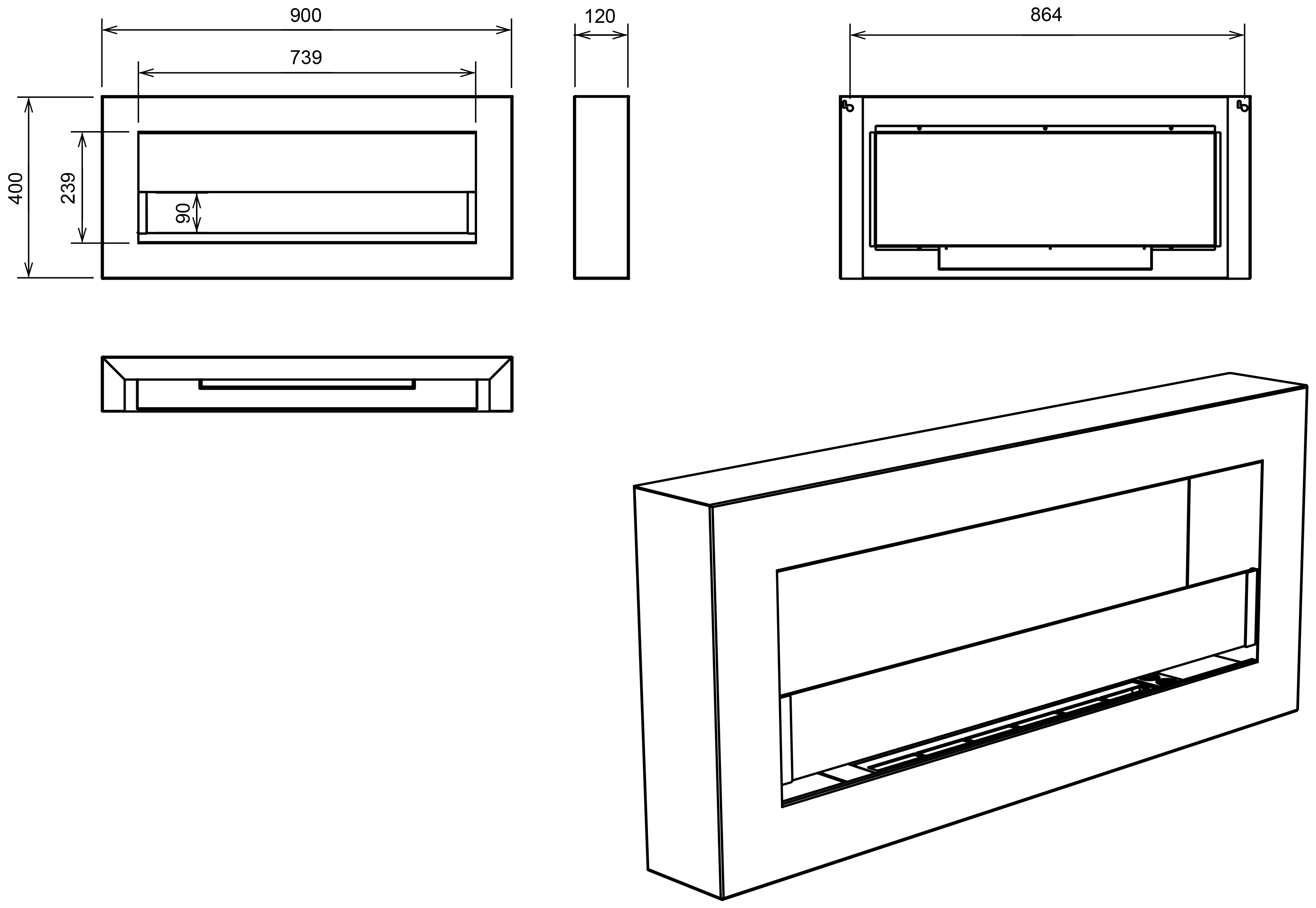 Biokominek wiszący 900x400 Box wystarczy przymocować do ściany w dowolnym miejscu, bez podłączania do komina! Doskonale sprawdzi się jako ozdoba, którą