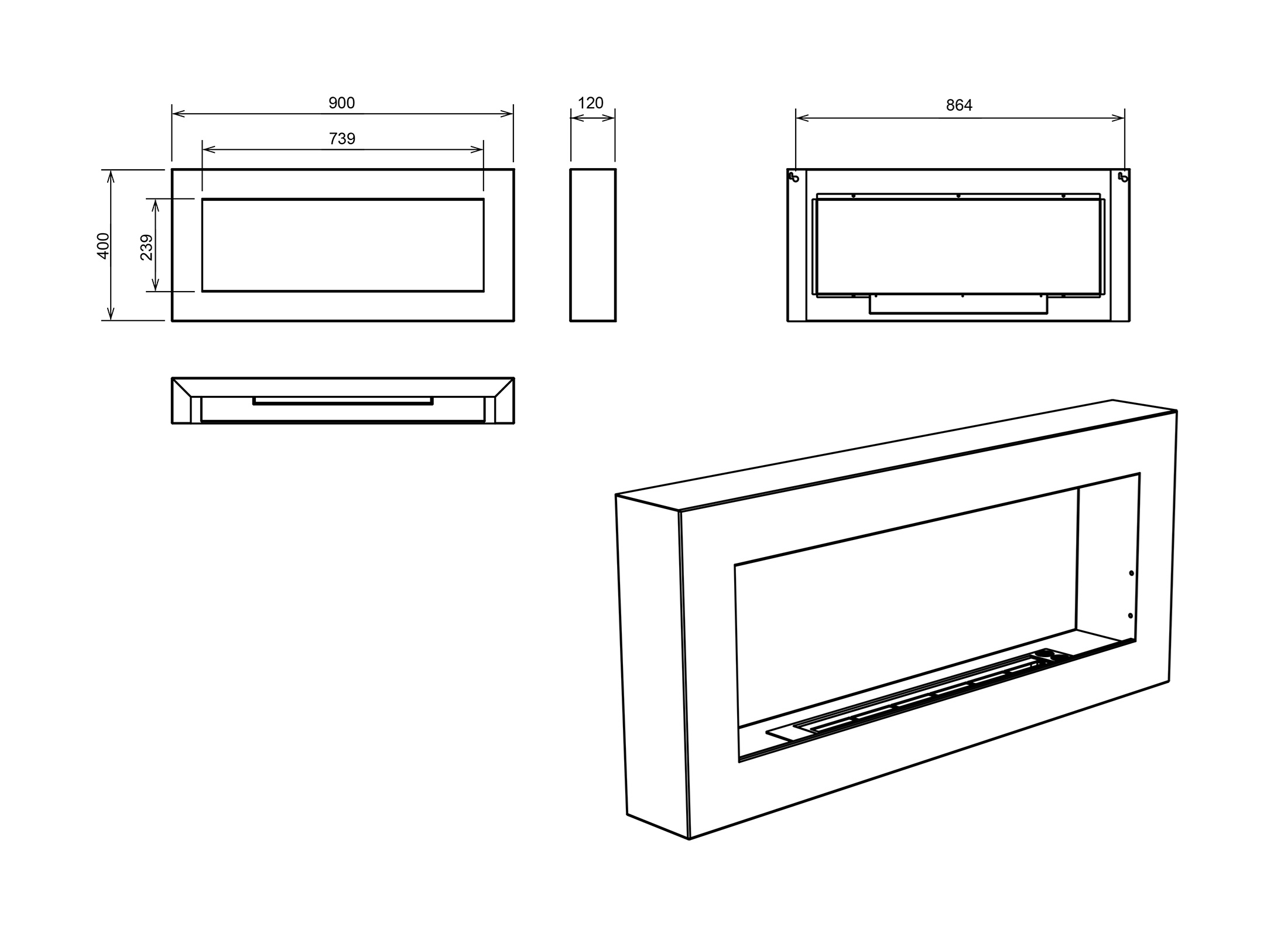 Biokominek wiszący 900x400 Box wystarczy przymocować do ściany w dowolnym miejscu, bez podłączania do komina! Doskonale sprawdzi się jako ozdoba, którą