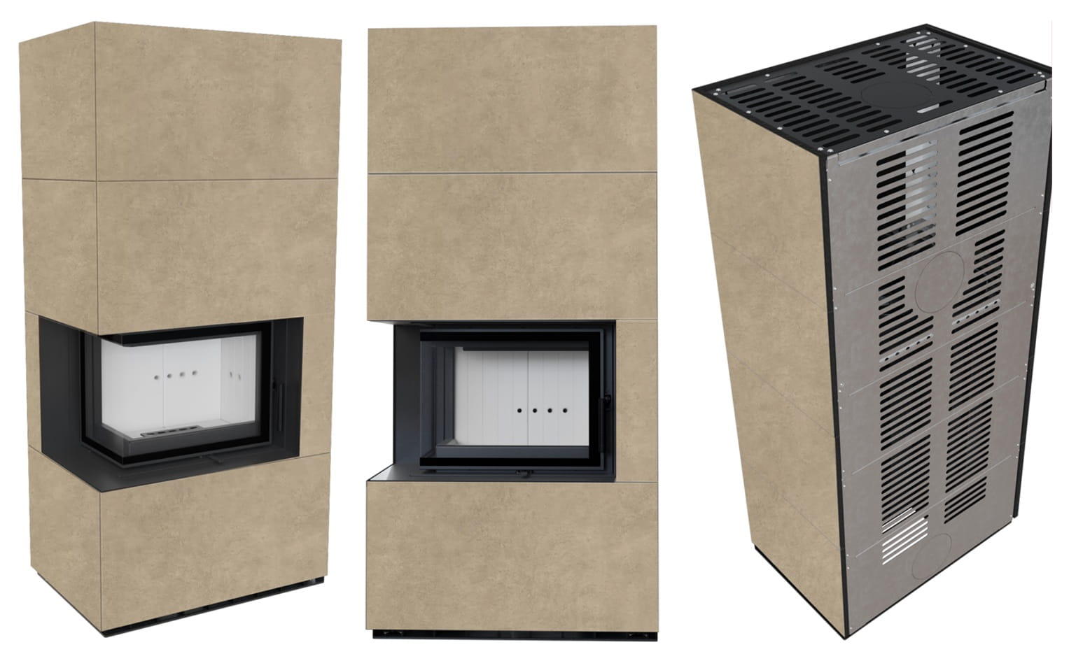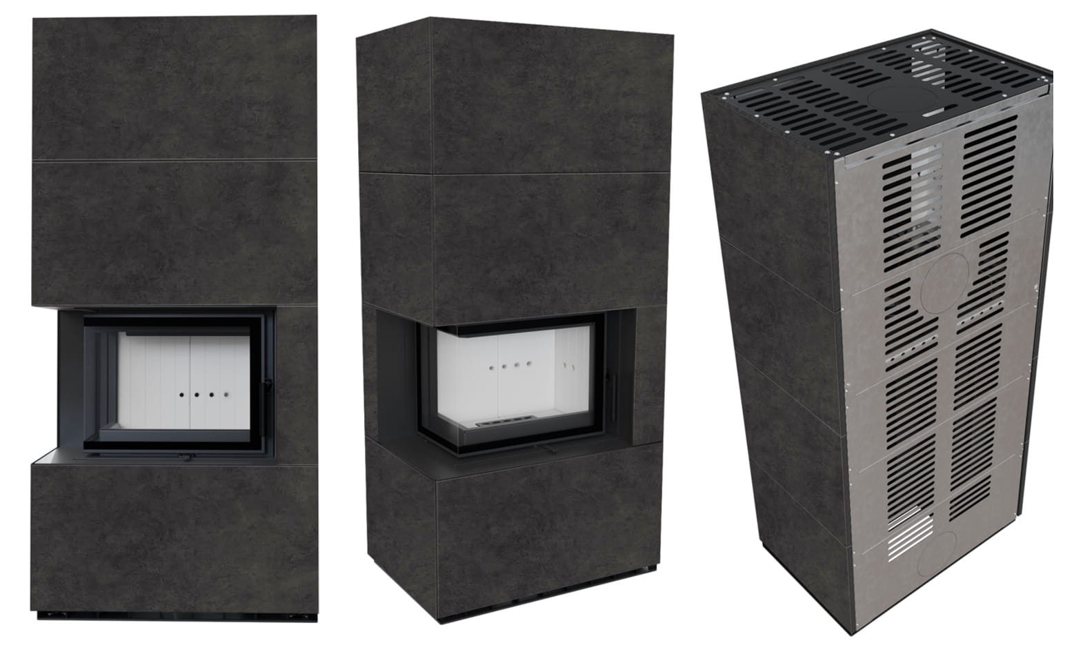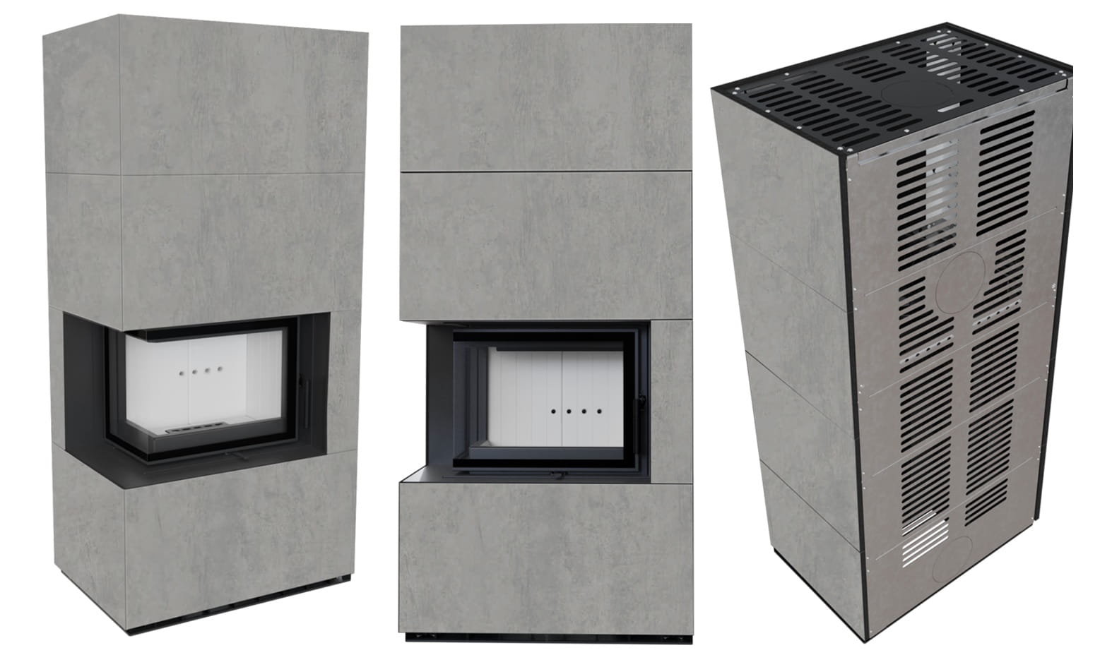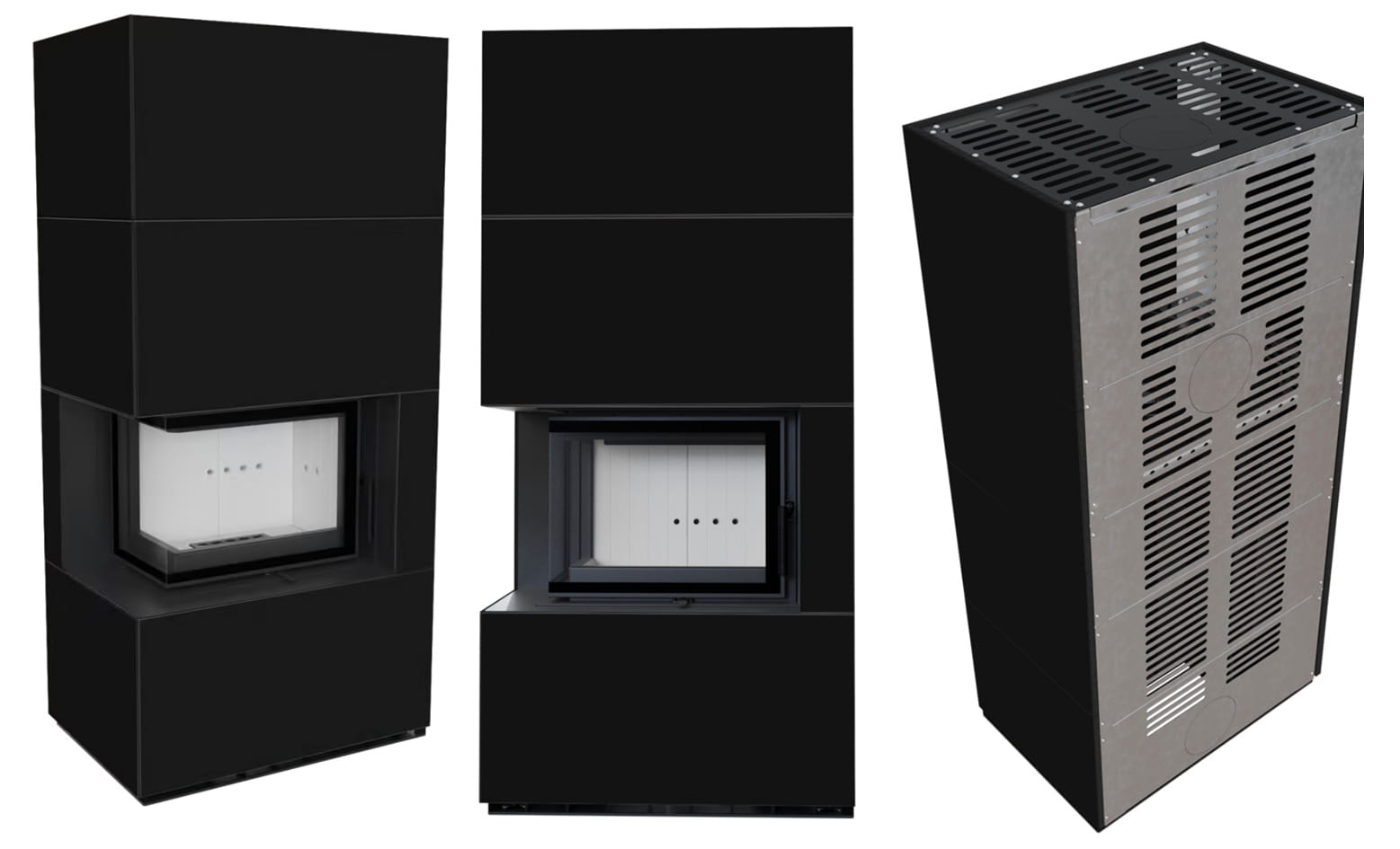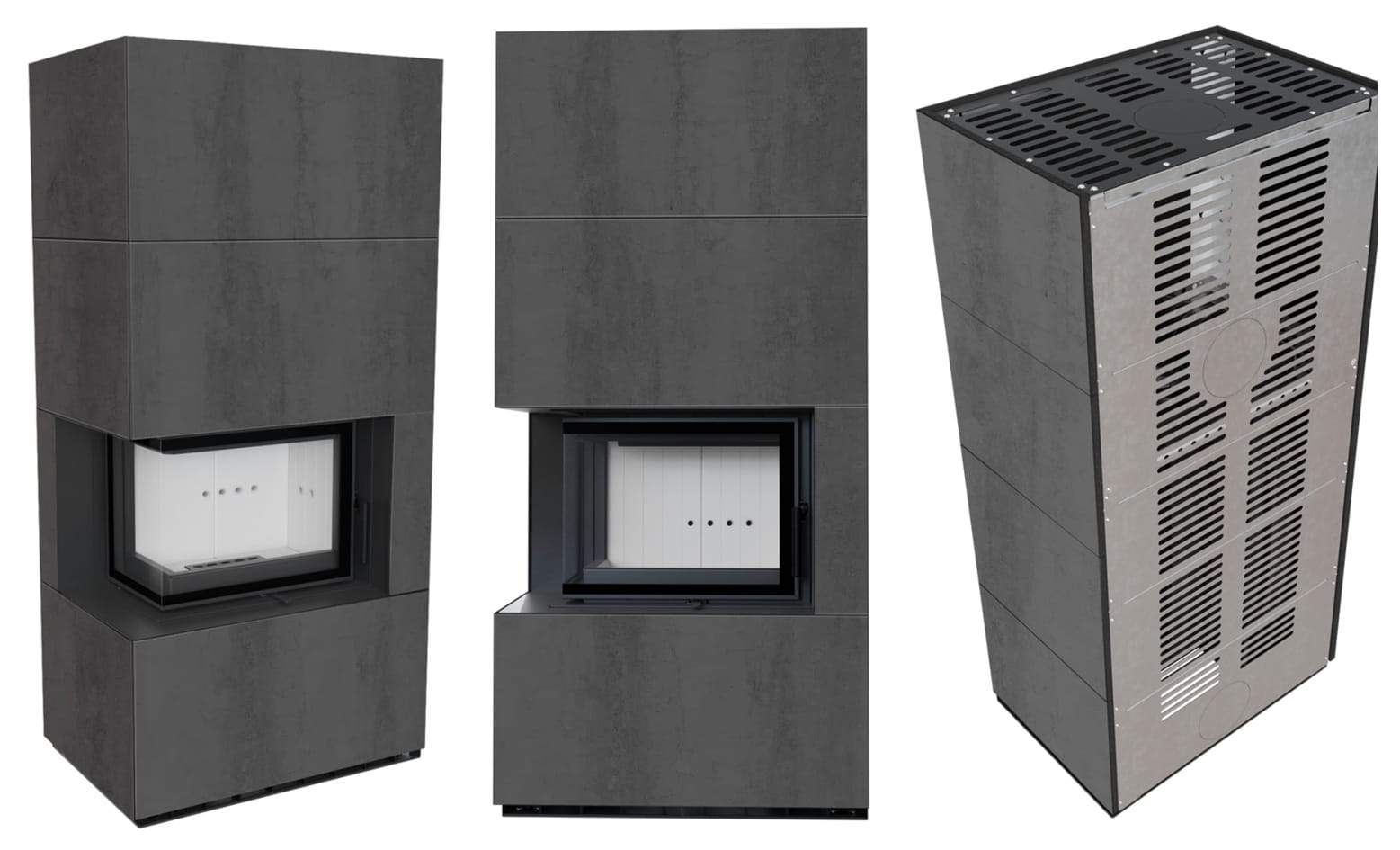 Kominek modułowy powietrzny stalowy Floki S BOX lewy z termotec w zabudowie ze spieku, wylot fi 160, moc 8 kW