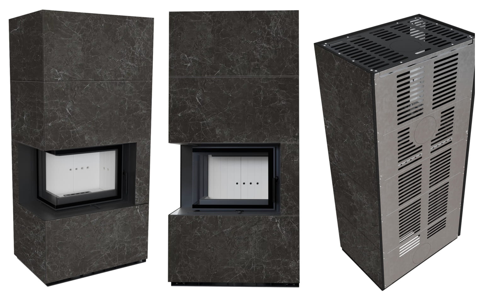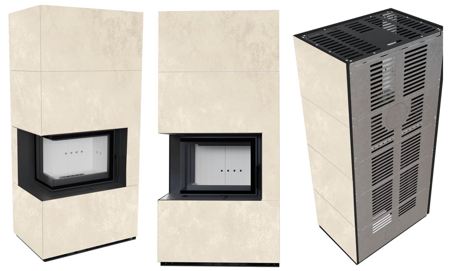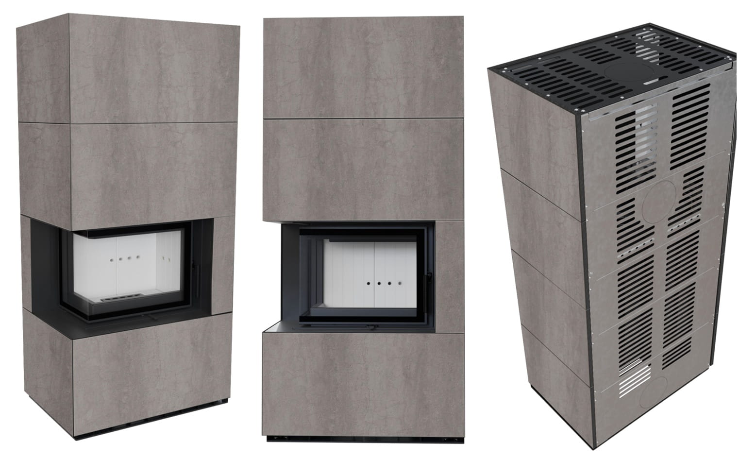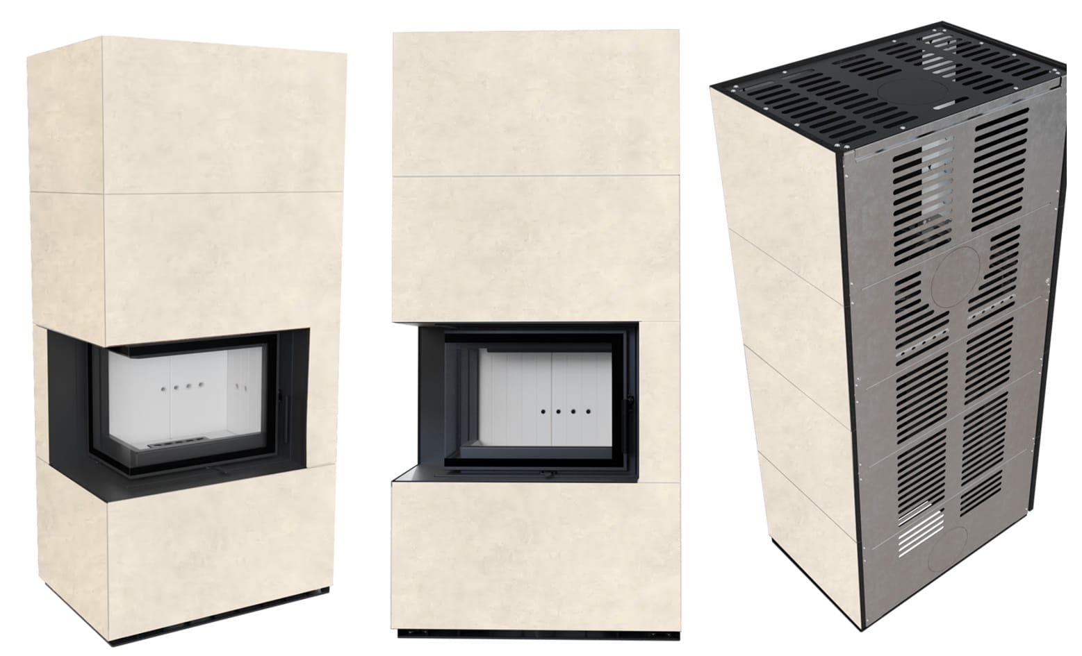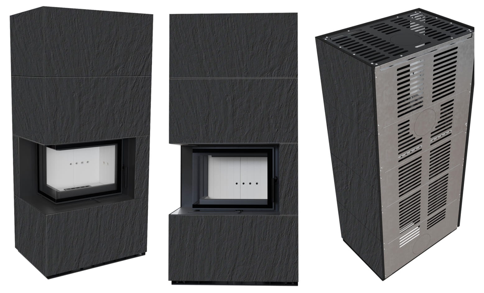 Kominek modułowy powietrzny stalowy Floki S BOX lewy z termotec w zabudowie ze spieku, wylot fi 160, moc 8 kW