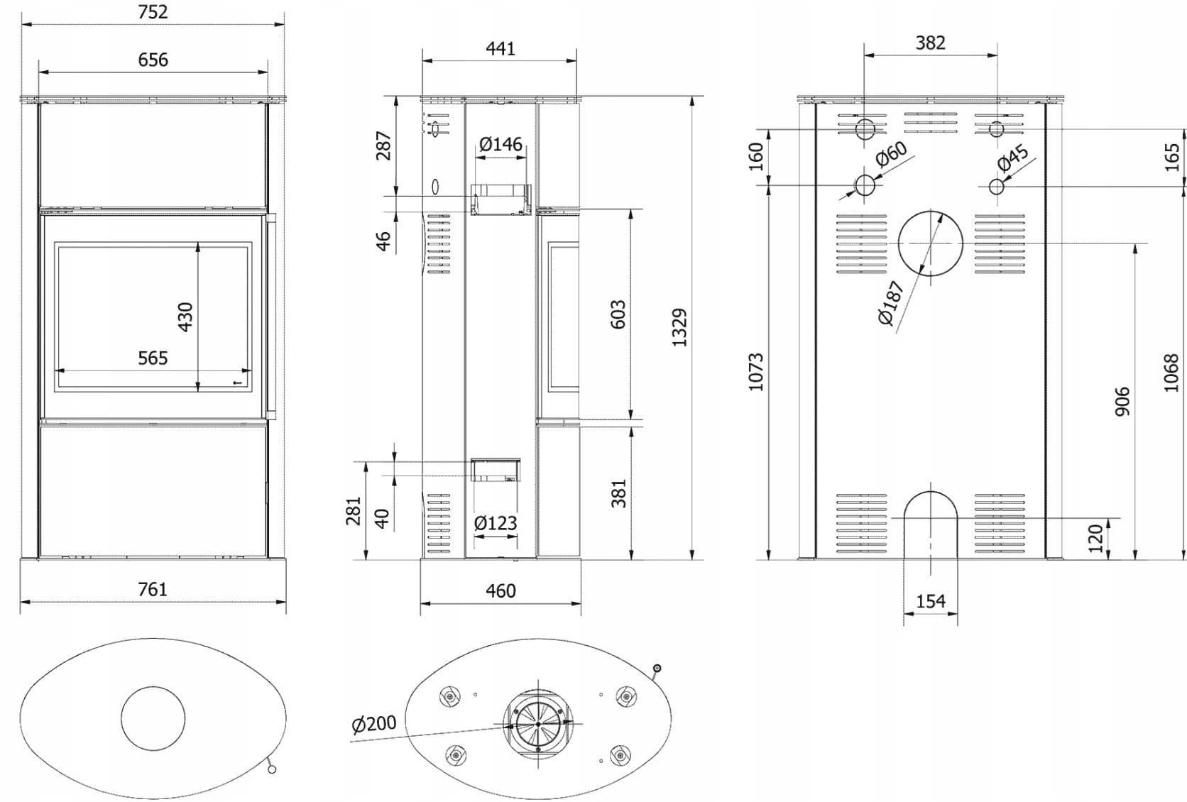 - ułatwiony montaż pieca dzięki otworowi w podstawie - Ø200mm,