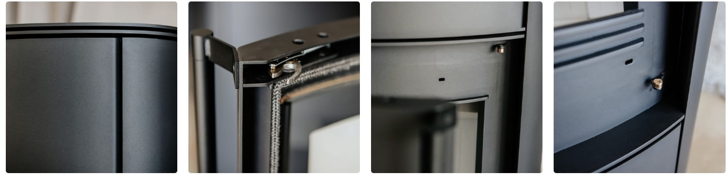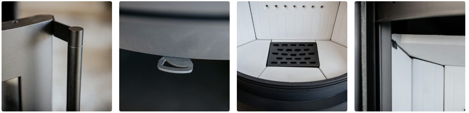 Elementy zewnętrzne pieca wykonane są z wysokogatunkowej stali. Dzięki temu nie tylko skutecznie wytrzymują działanie wysokich temperatur, ale także gwarantują stabilność całej konstrukcji.