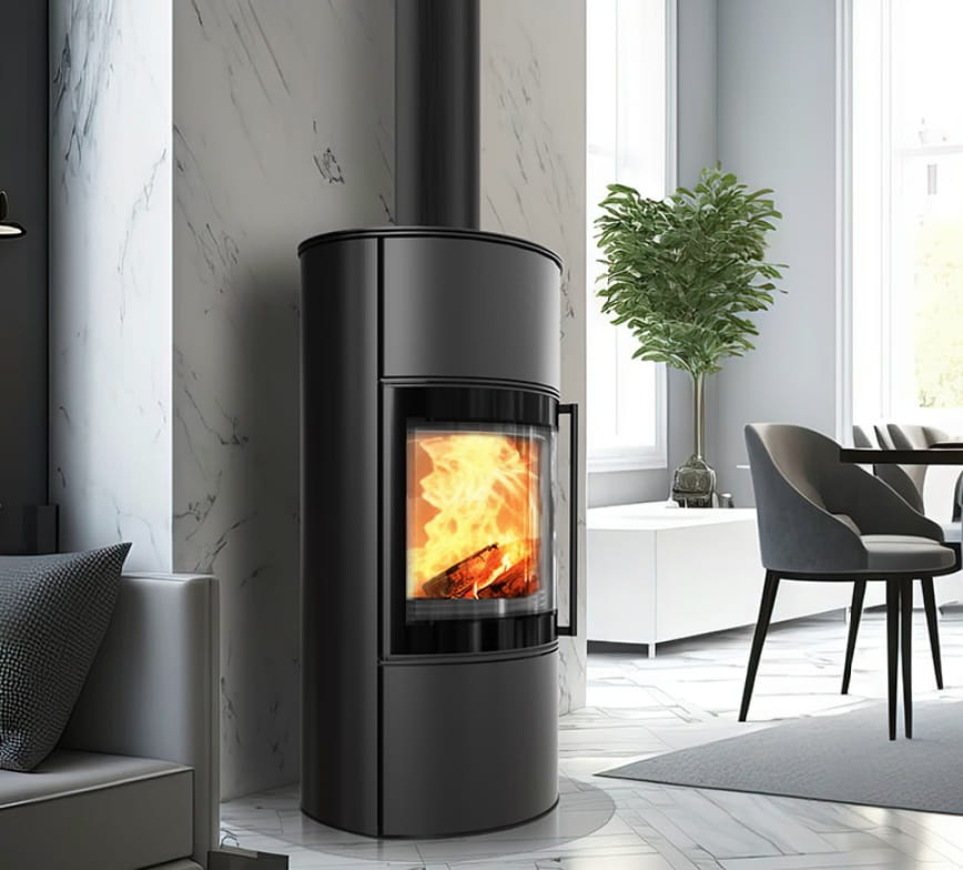 Piec wolnostojący BJORN/W wyróżnia się obszerną panoramiczną szybą typu GLASS z estetycznym czarnym dekorem, co zapewnia doskonały widok na płomienie. Nadaje mu to nie tylko elegancki wygląd, ale także sprawia, że staje się atrakcyjnym elementem dekoracyjnym. BJORN/W jest idealnym rozwiązaniem dla osób poszukujących stylowego wykończenia który pasuje do różnorodnych aranżacji wnętrz, zarówno tradycyjnych, minimalistycznych, jak i nowoczesnych. Dodaje uroku do każdego pomieszczenia, w którym się znajduje,