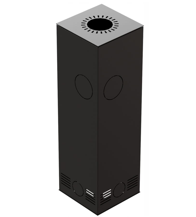 Możliwość zastosowania w różnych warunkach montażowych, dzięki regulowanemu wylotowi spalin: z tyłu lub na górze pieca (przy montażu wylotu z tyłu pieca wymagany jest zakup zaślepki płyty górnej).