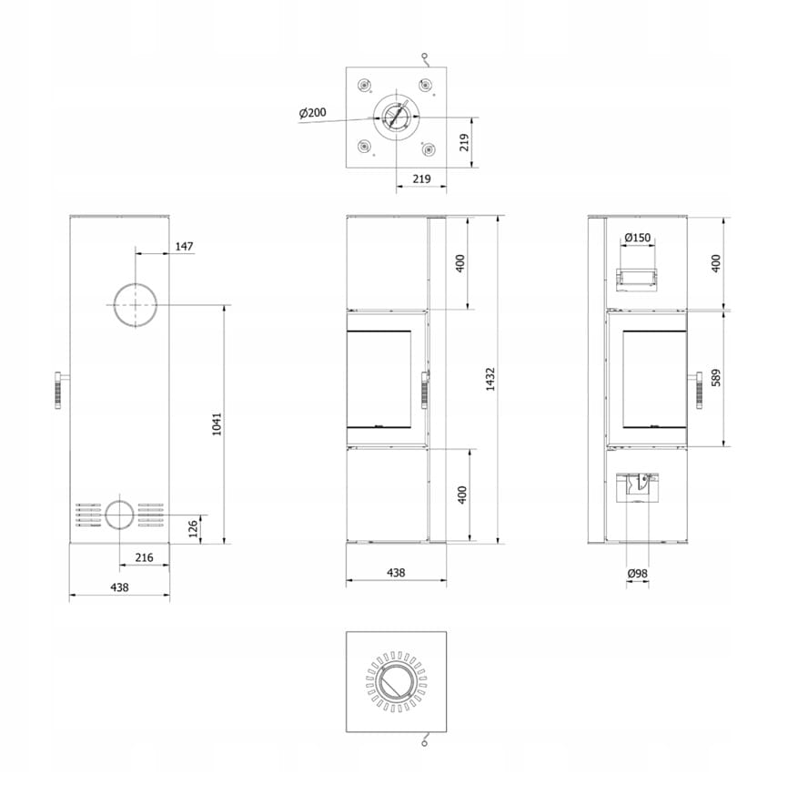 - Średnica wylotu spalin (mm): 150