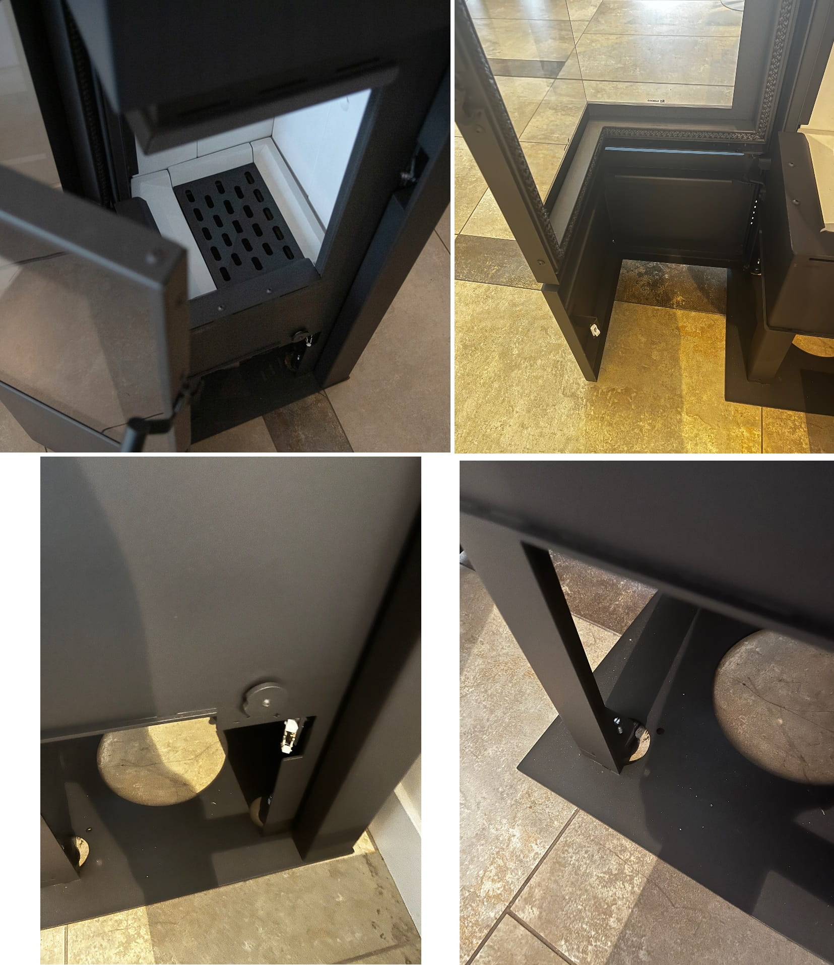 - Regulowany wylot spalin: montażowych, z tyłu lub na górze pieca