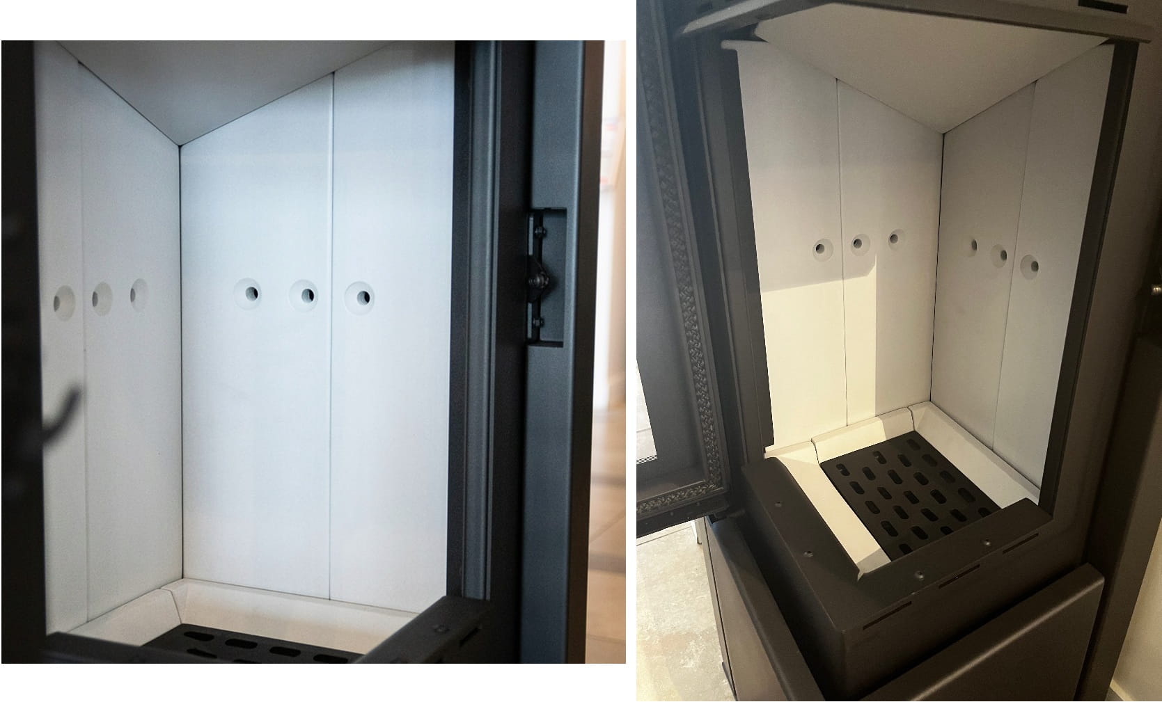 Wyłożenie komory spalania materiałem akumulacyjnym podnosi temperaturę w palenisku, a po wygaśnięciu ognia ciepło jest przez długi czas oddawane do pomieszczenia.