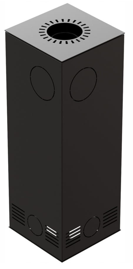 Możliwość zastosowania w różnych warunkach montażowych, dzięki regulowanemu wylotowi spalin: z tyłu lub na górze pieca (przy montażu wylotu z tyłu pieca wymagany jest zakup zaślepki płyty górnej).