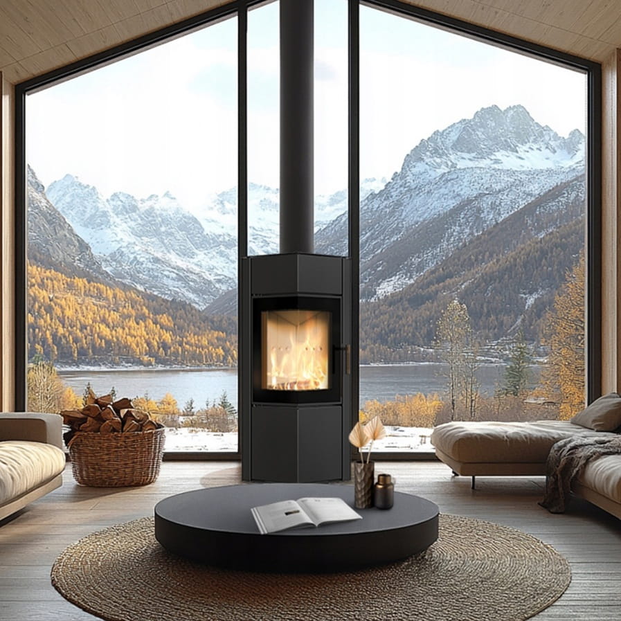 -Magia płomieni: Narożne przeszklenie podkreśla urok ognia.