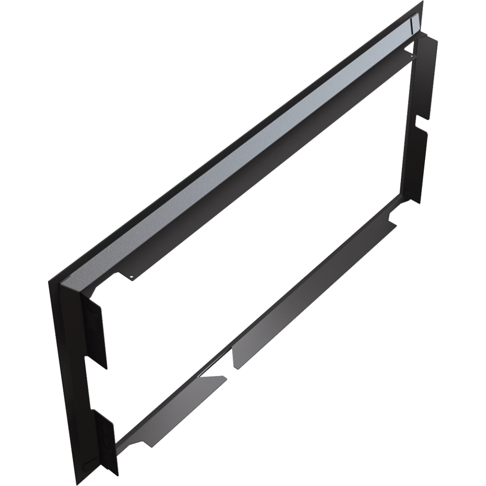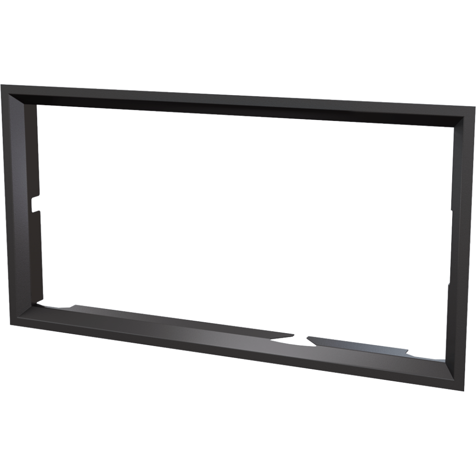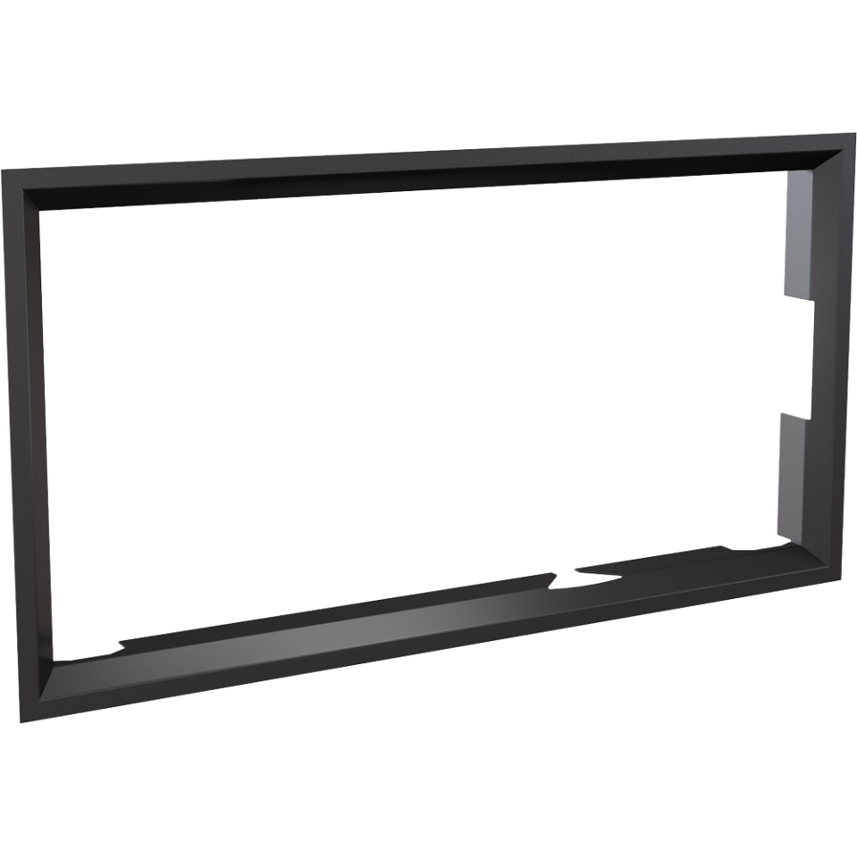 Nowoczesna stalowa ramka ozdobna do wkładu kominkowego NADIA 14 z prostym frontem oraz drzwiami otwieranymi lewostronnie (standard).