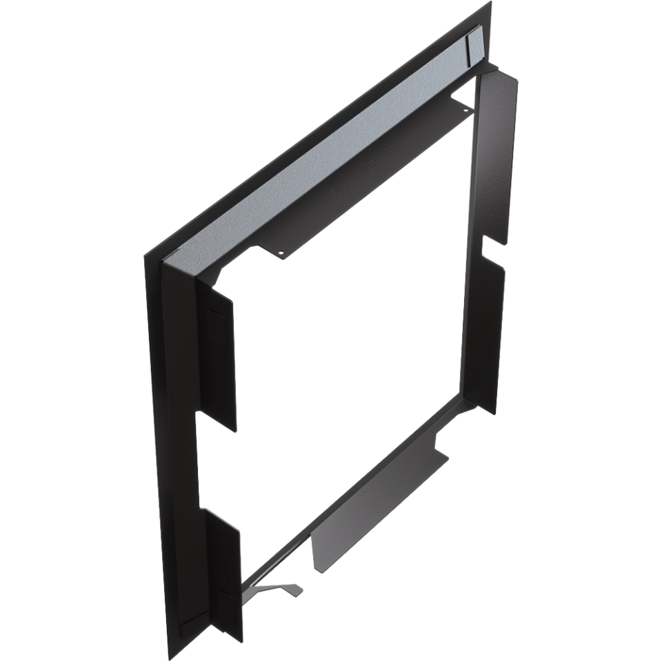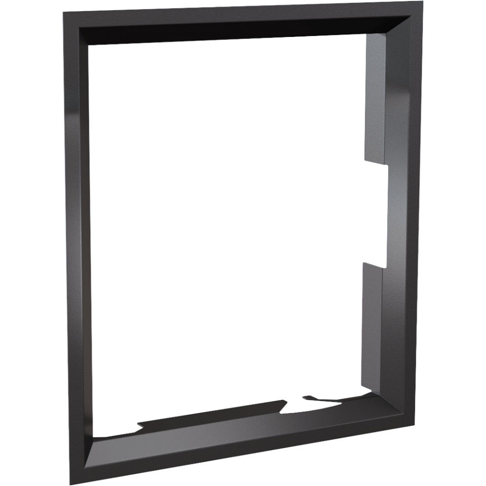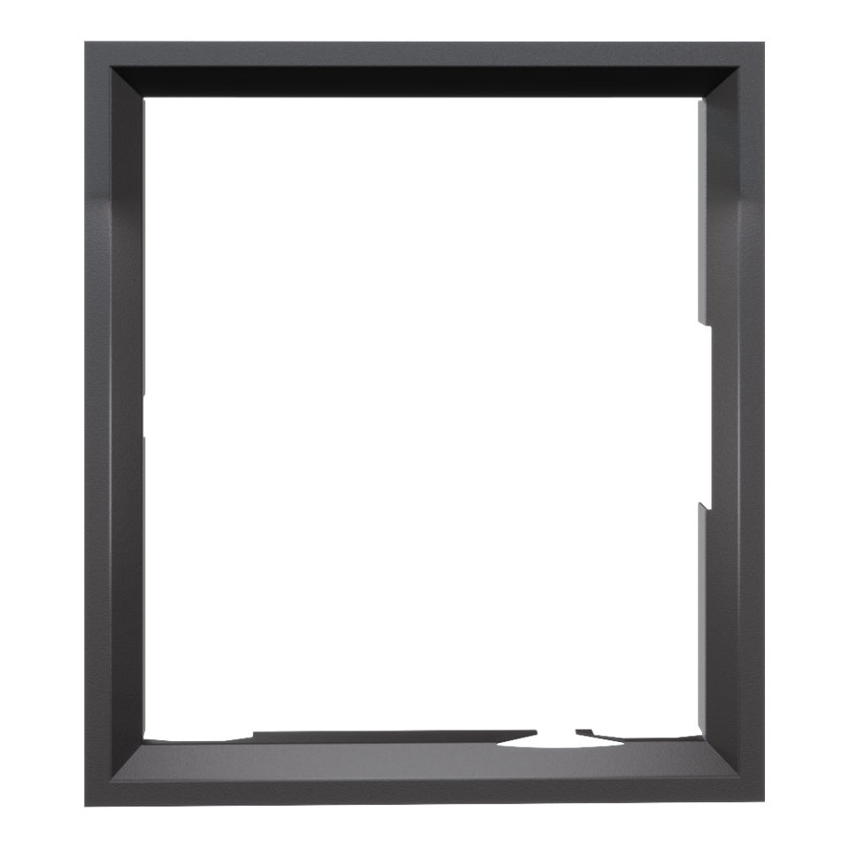 Nowoczesna stalowa ramka ozdobna do wkładu kominkowego NADIA 8 z prostym frontem oraz drzwiami otwieranymi lewostronnie (standard).
