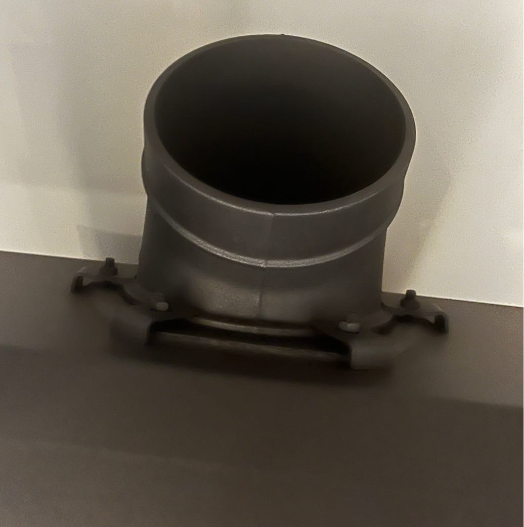 Wbudowany dolot powietrza fi 125, który zapewnia doprowadzenie świeżego powietrza do paleniska z zewnątrz budynku, co wpływa na lepsze spalanie.