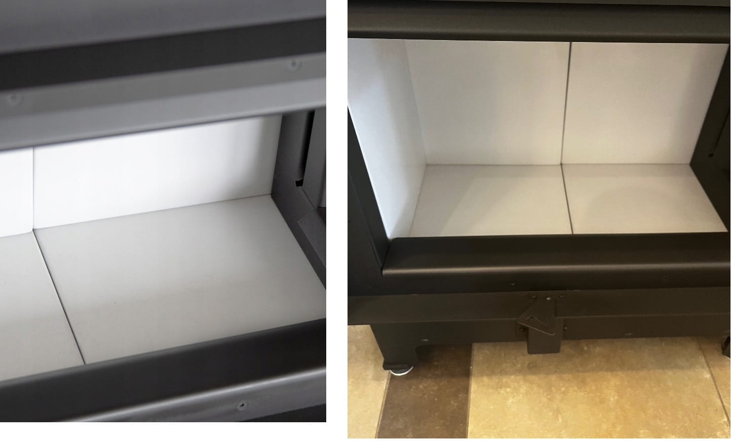 - efektywne spalanie i dłuższe utrzymywanie temperatury dzięki wyłożeniu komory spalania