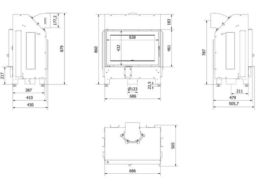 Dzięki regulowanym nóżkom szybko i precyzyjnie wypoziomujesz kominek, nawet na nierównej powierzchni. To gwarantuje stabilność, bezpieczeństwo i bezproblemowy montaż, bez konieczności dodatkowych przeróbek. Pewne ustawienie, pełen komfort!