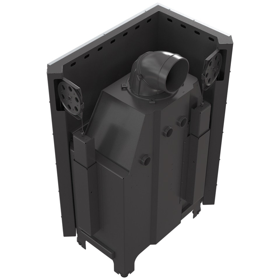 Potrójny system dopowietrzenia komory spalania: powietrze pierwotne - skierowane jest na płytę, na której odbywa się spalanie; powietrze wtórne dostarczane jest otworami w tylnej ścianie. Dodatkowo we wkładzie zastosowany jest system czystej szyby (kurtyna powietrza).