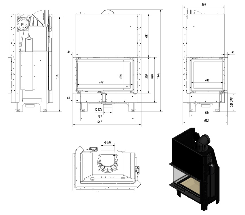 Wkład kominkowy powietrzny stalowy MBO 15 gilotyna lewy BS z szybą giętą + dolot, moc 6-19 kw