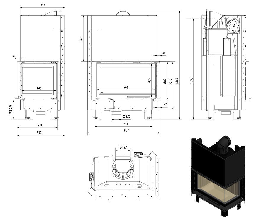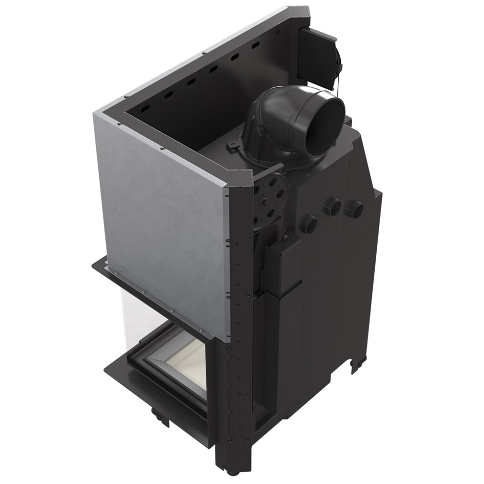Wkład kominkowy powietrzny stalowy MBO 15 gilotyna prawy BS z szybą giętą + dolot, moc 6-19 kw