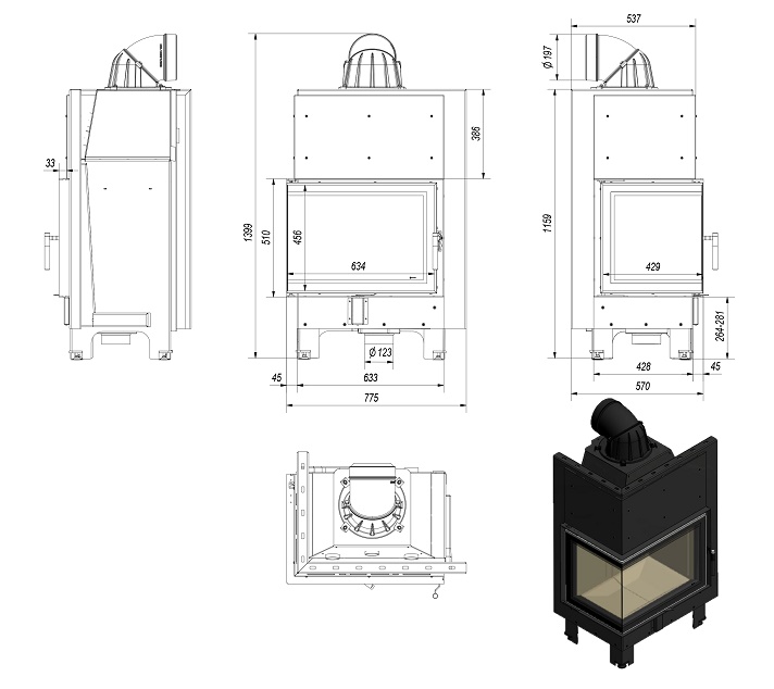 Wykonany z wysoko gatunkowej stali korpus i front odporny na działanie bardzo wysokich temperatur.