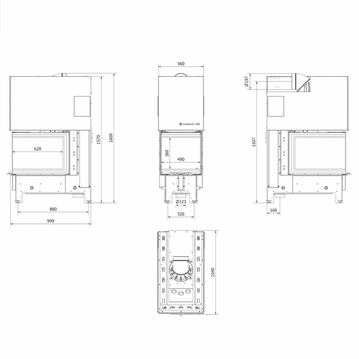 - Regulowany wylot spalin: montażowych, z tyłu lub na górze pieca