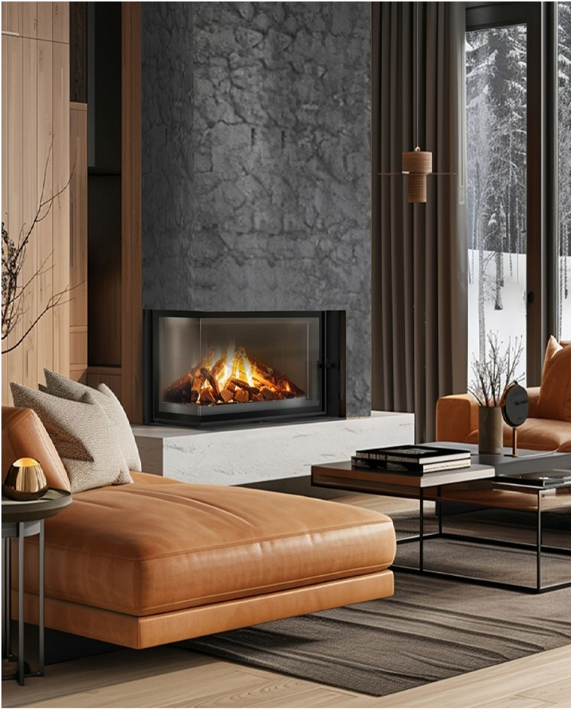 Oto nowoczesny kominek narożny, idealny dla tych, którzy cenią zarówno estetykę, jak i funkcjonalność. Produkt charakteryzuje się wysoką wydajnością energetyczną, co jest potwierdzone klasą A+. Ten model został zaprojektowany do spalania kłód drewna i drewna liściastego o odpowiedniej wilgotności, co gwarantuje czyste spalanie i efektywne ogrzewanie pomieszczenia. Prosta, a zarazem elegancka konstrukcja, z dużą powierzchnią przeszkloną, pozwala cieszyć się hipnotyzującym widokiem ognia z dwóch stron, czyniąc każdą chwilę przy kominku wyjątkową.