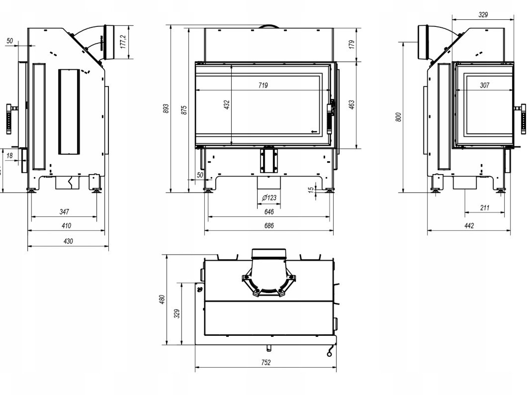 - Elastyczność montażu – regulowane nóżki i ruchomy wylot spalin 360° pozwalają na dopasowanie do każdego wnętrza.