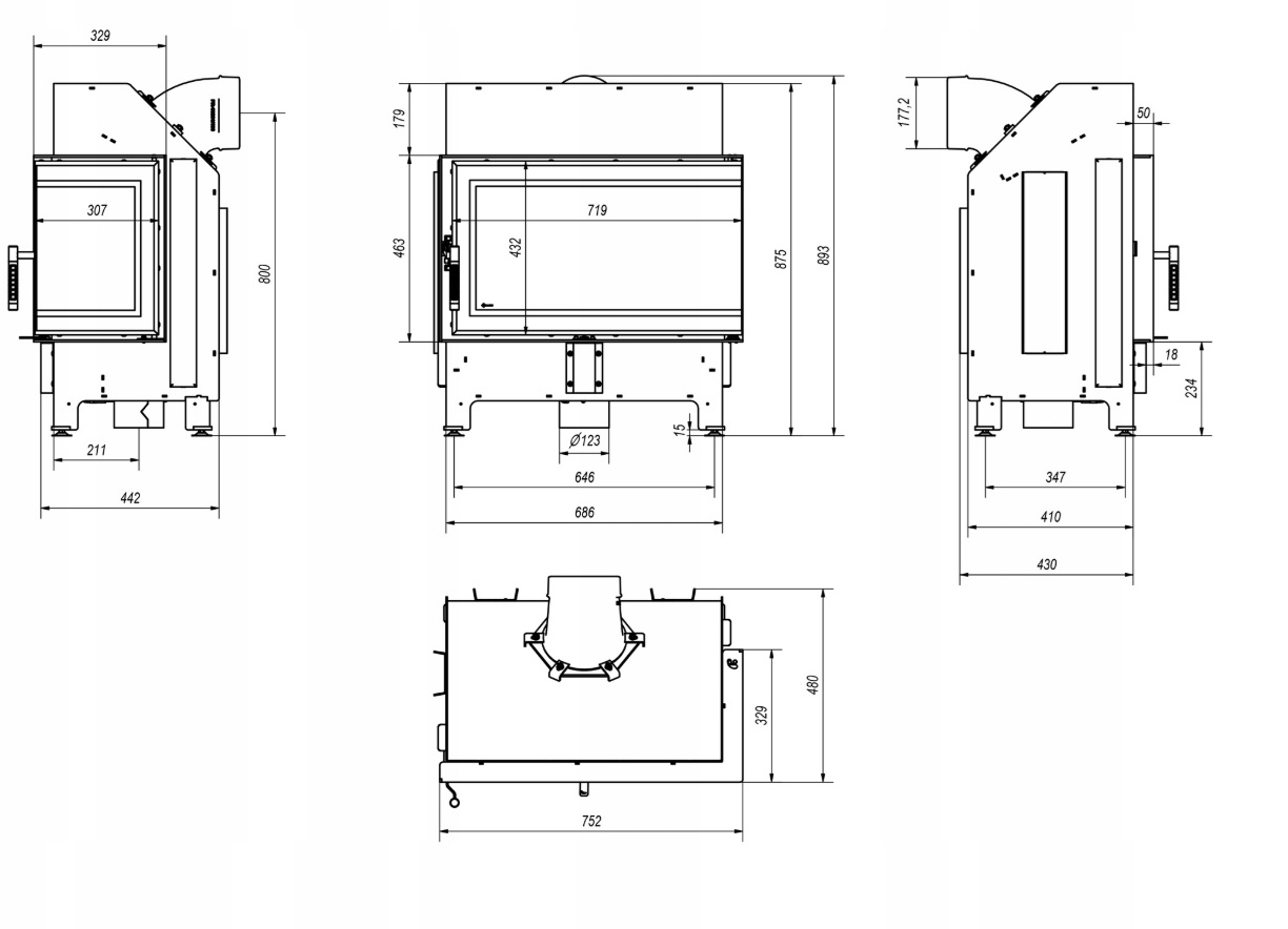 - Elastyczność montażu – regulowane nóżki i ruchomy wylot spalin 360° pozwalają na dopasowanie do każdego wnętrza.