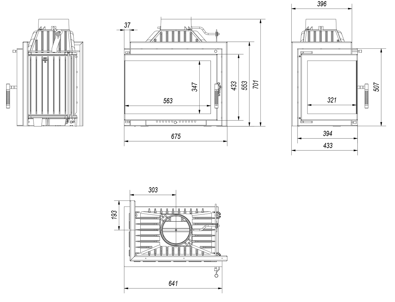 - Frontowa szyba wytrzymuje nawet do 660°C