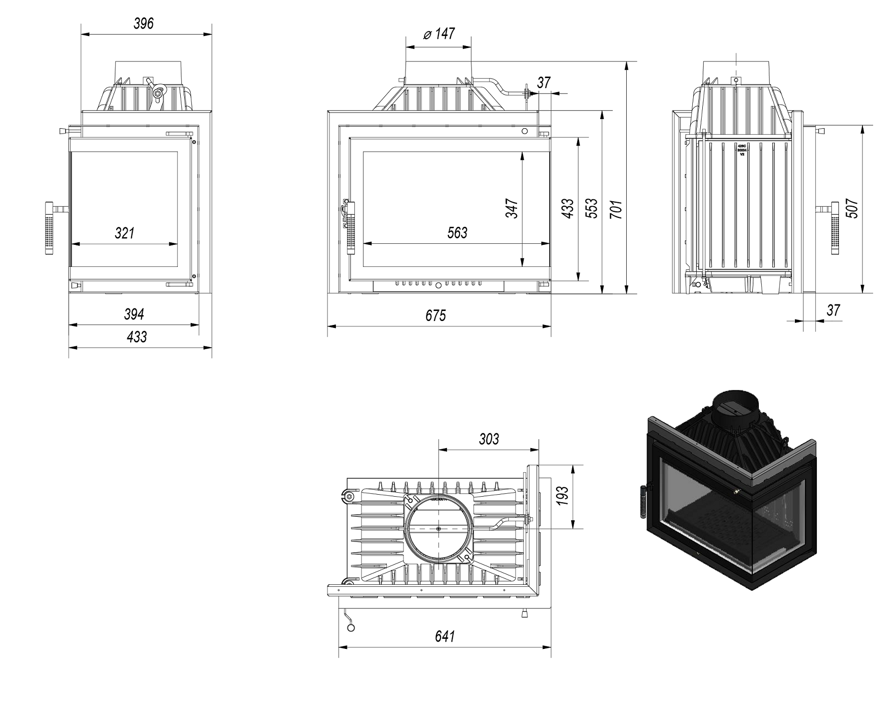 - Frontowa szyba wytrzymuje nawet do 660°C