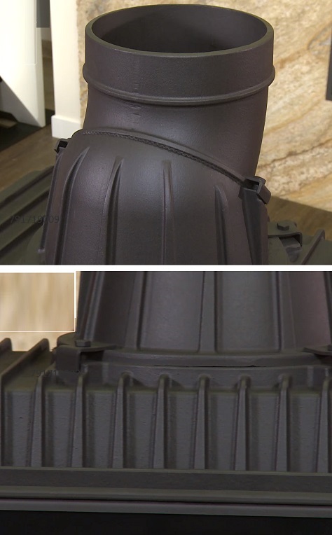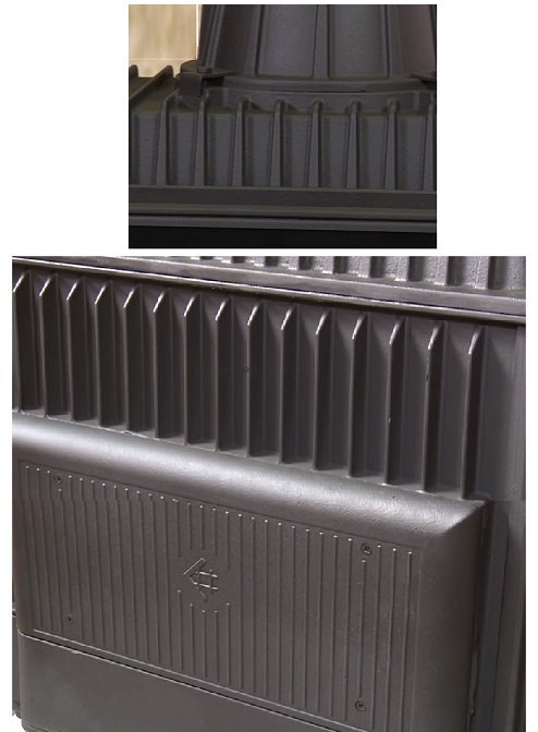 Dodatkowo posiada wyjmowany płotek, który zabezpiecza przed wypadnięciem drewna z paleniska oraz ułatwia czyszczenie kominka.