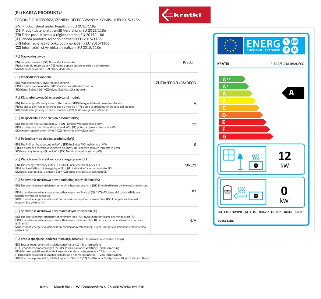 Urządzenia z serii ZUZIA ECO to wkłady kominkowe o przestronnej żeliwnej komorze spalania, wyposażone dodatkowo od zewnętrznej strony w gęsto rozmieszczone radiatory. Dzięki zastosowaniu takiego rozwiązania powierzchnia oddawania ciepła do otoczenia jest dużo większa. Zwiększa to tym samym masę samego urządzenia. Wkład posiada system dopalania spalin, który wraz z innymi rozwiązaniami technicznymi wpływa na bardzo dobre parametry spalania, dzięki którym urządzenie spełnia surowe wymagania Ekoprojektu.
