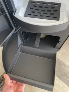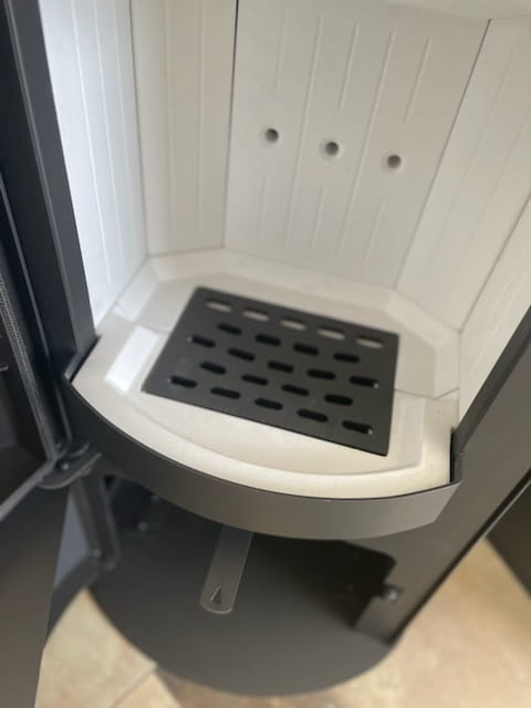 Wyciągany popielnik bez konieczności wyjmowania rusztu. Pojemnik na popiół, w którym gromadzą się pozostałości po spalonym drewnie. Można go wyjmować i łatwo czyścić.