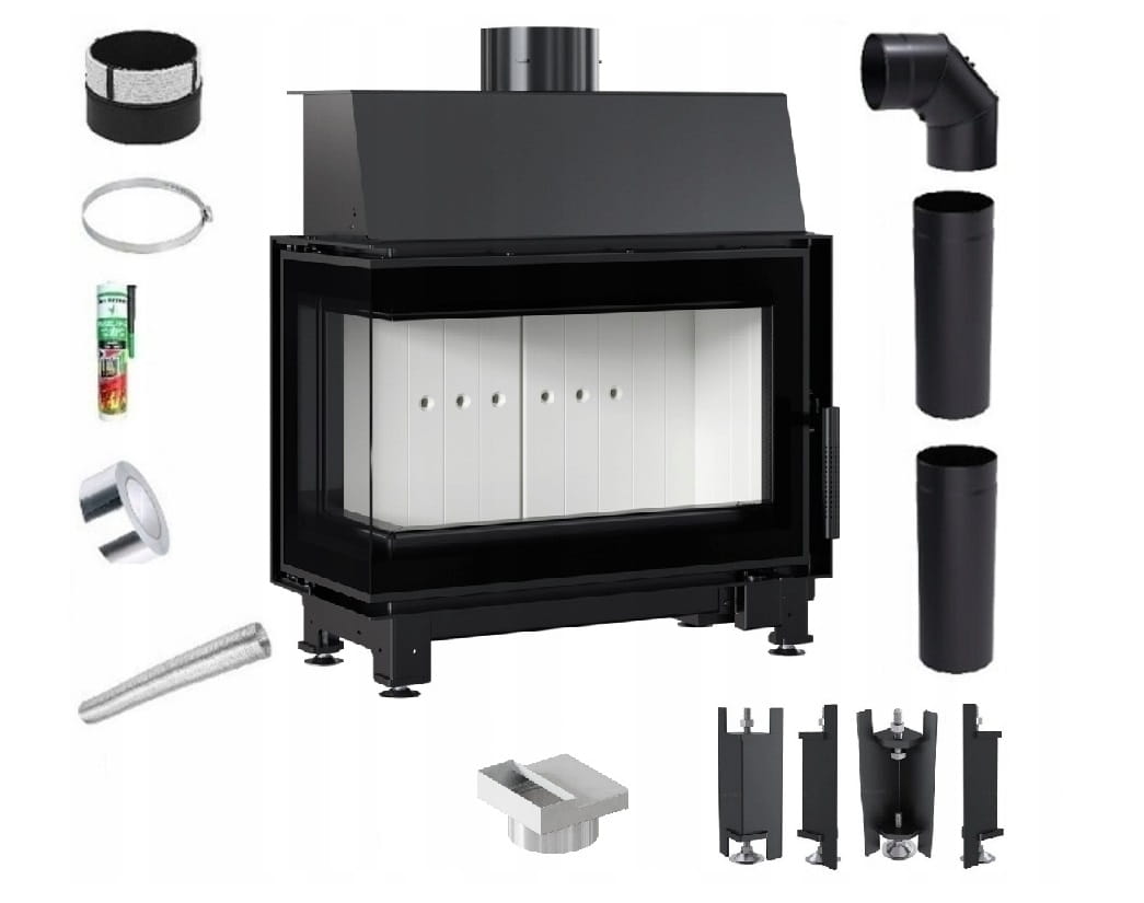 Zestaw 1: Wkład kominkowy powietrzny stalowy Simple S lewy BS + dolot z przejściem na rurę fi 125, termotec, pojedyncza szyba typu glass, wylot fi 150, moc 6 kw + akcesoria