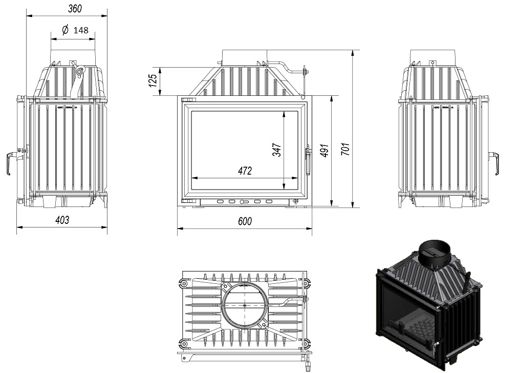 Maksymalne wykorzystanie ciepła dzięki gęsto rozmieszczonym radiatorom oraz ściankom paleniska wykonanym z wysokiej jakości żeliwa o grubości 8 mm.