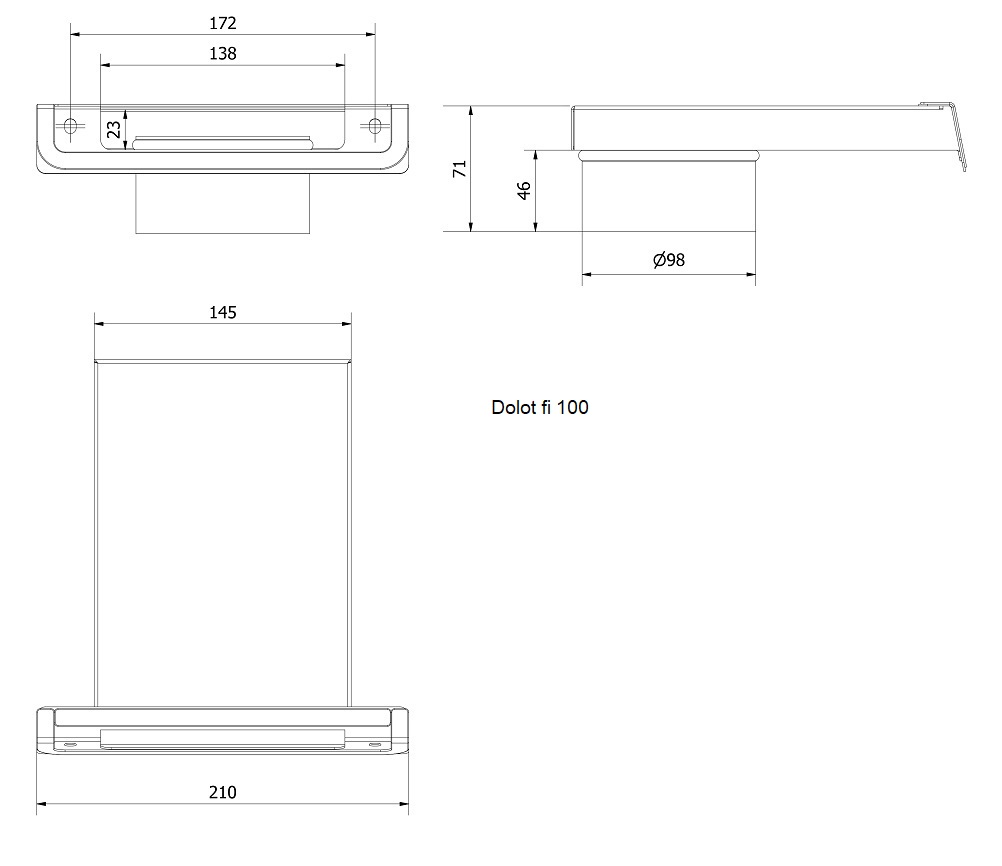 Dolot zimnego powietrza fi 100 lub fi 125 do wkładów żeliwnych, który ma na celu doprowadzenie świeżego powietrza do paleniska z zewnątrz budynku. Nie wymaga montażu dodatkowego elementu: przejście dolot - rura. Montuje się go na dole z tyłu wkładu.