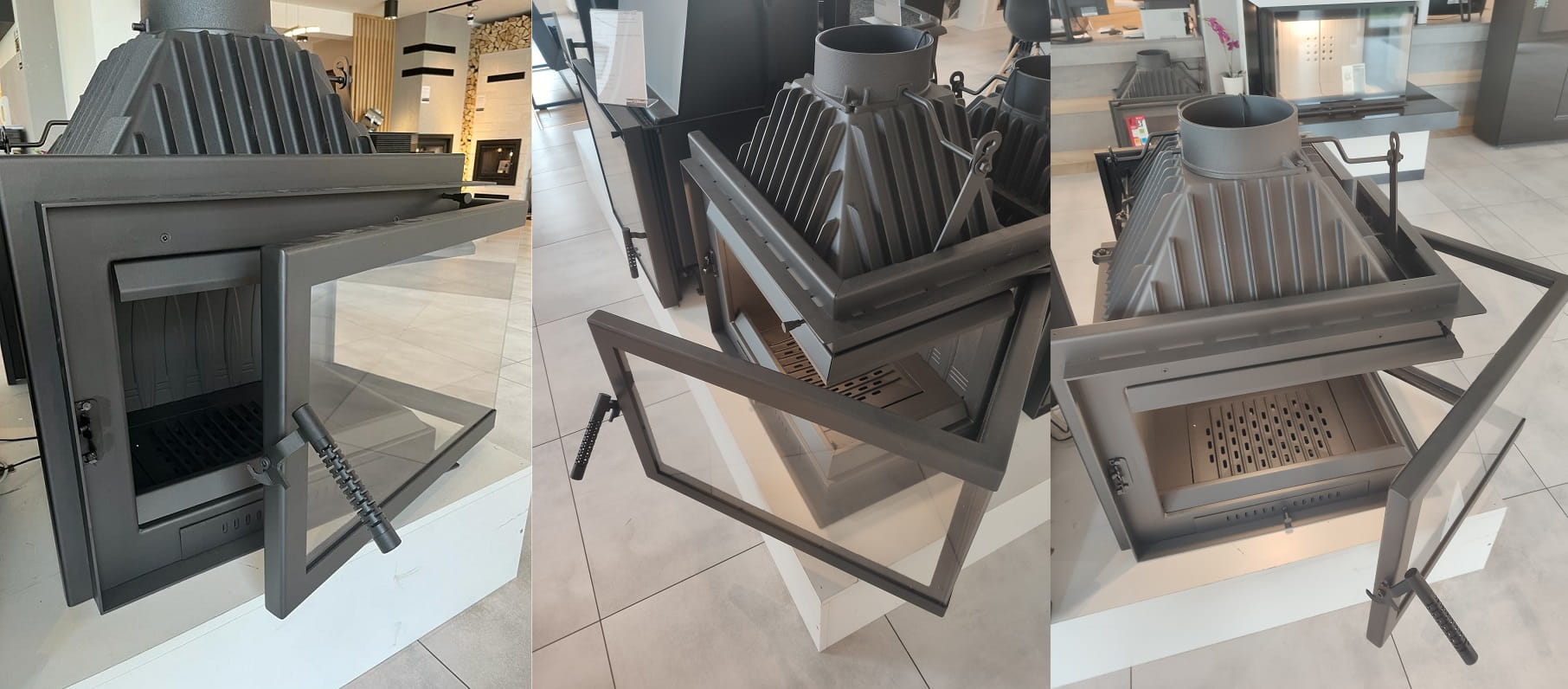- Frontowa szyba wytrzymuje nawet do 660°C