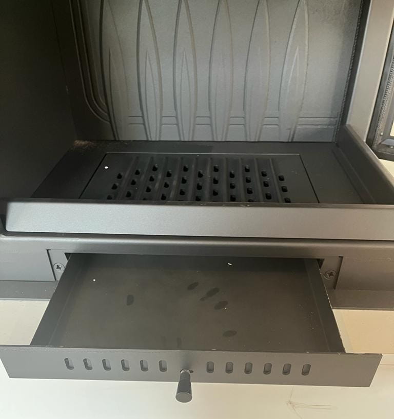- Wyjmowany ruszt i popielnik ułatwiają utrzymanie wkładu w czystości.