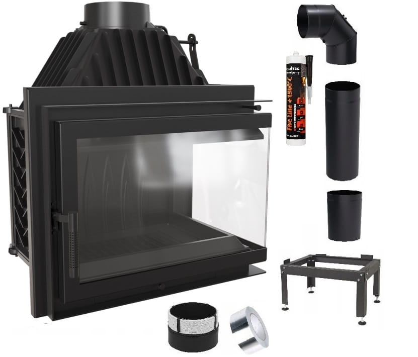 Zestaw 1: Wkład kominkowy powietrzny żeliwny z szybrem Simple Z/S prawy BS, wylot fi 200, moc 15kw + akcesoria