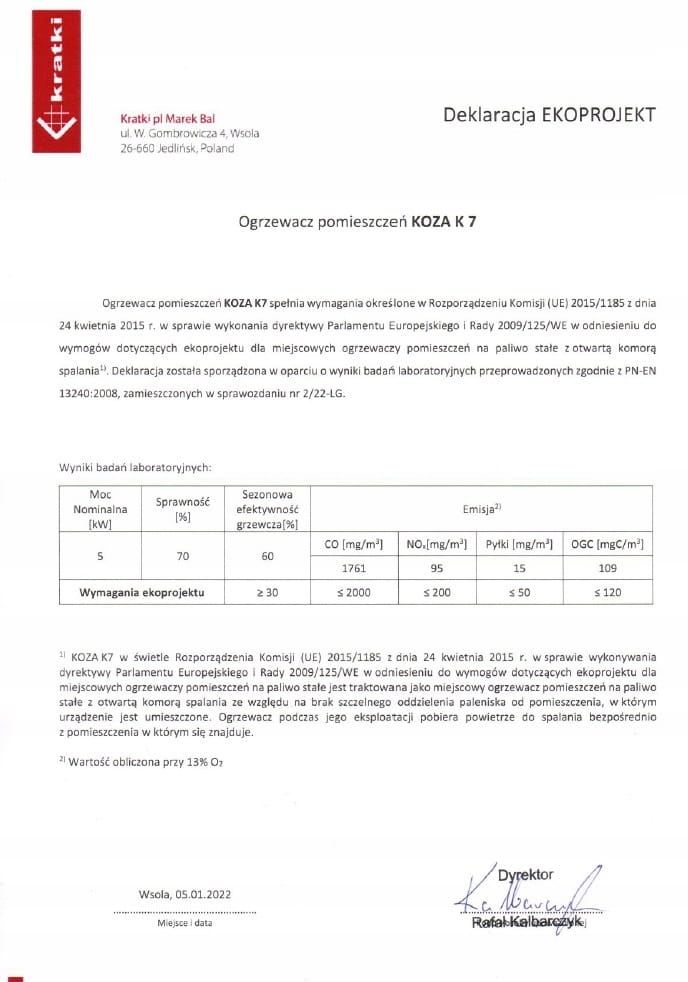 - Spełnia wymagania EKOPROJEKTU: Tak
