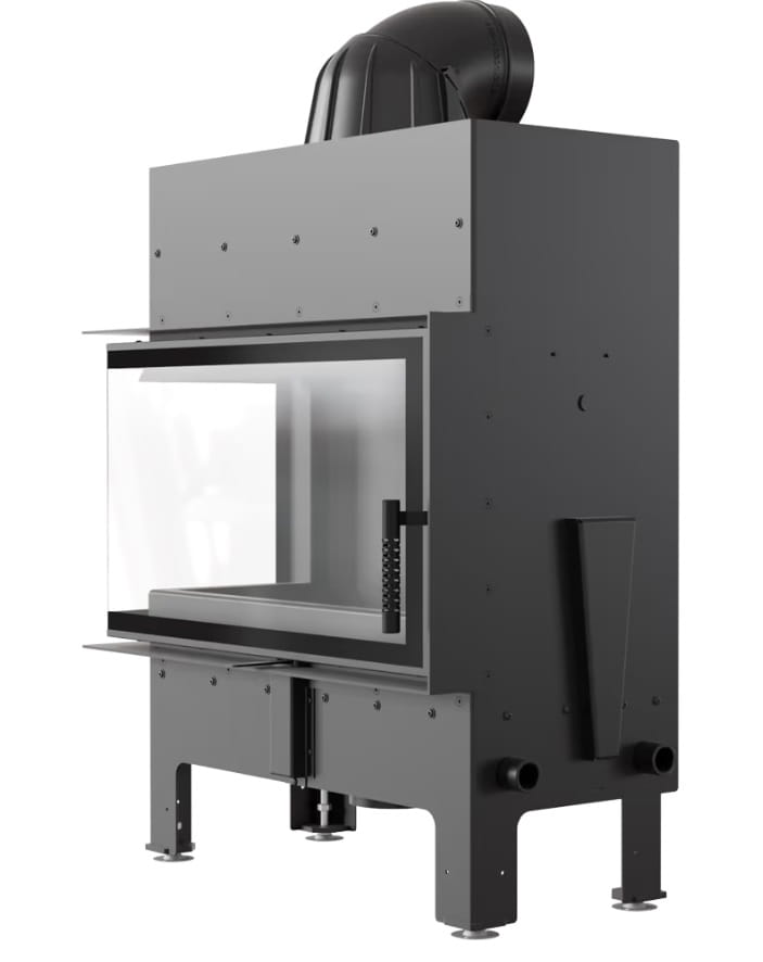 Spawane króćce transportowe znacząco ułatwiają przeniesienie wkładu do miejsca instalacji. Uchwyty nie stanowią wyposażenia kominka.