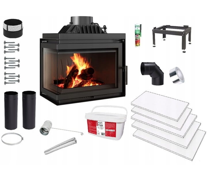 Zestaw 13: Wkład kominkowy powietrzny żeliwny z szybrem Simple M/S 8 lewy BS + dolot , moc 8kw, wylot fi 200 + akcesoria