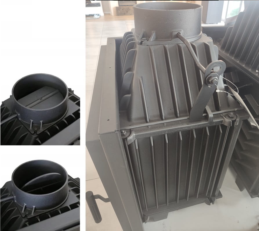 Umożliwia regulację ciągu komina, co wpływa na efektywniejszy proces spalania. Regulacja jest możliwa za pomocą gałki.