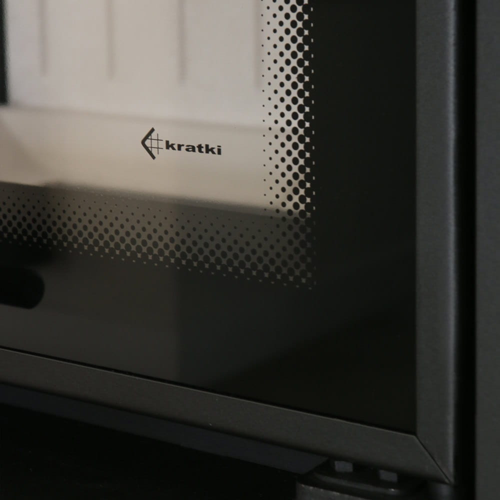 - Drzwiczki z hartowanego szkła dla lepszego widoku na płomienie.
