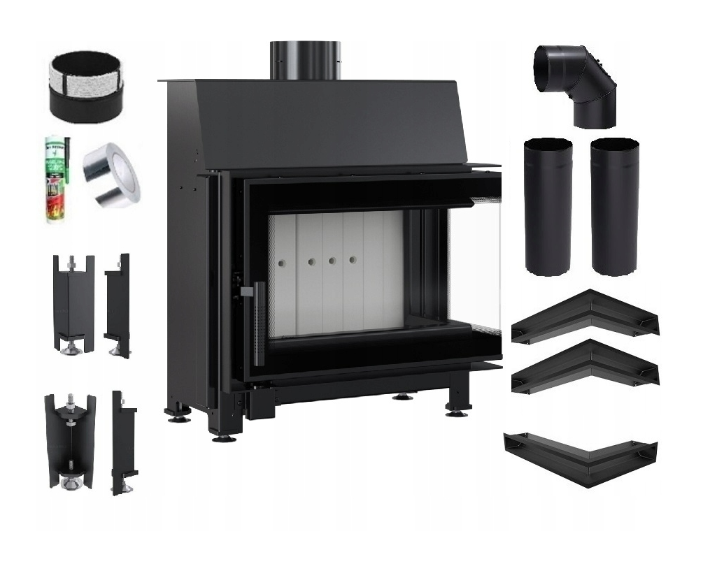 Zestaw 2: Wkład kominkowy powietrzny stalowy Simple S prawy BS + dolot, termotec, pojedyncza szyba typu glass, wylot fi 150, moc 6 kw + akcesoria