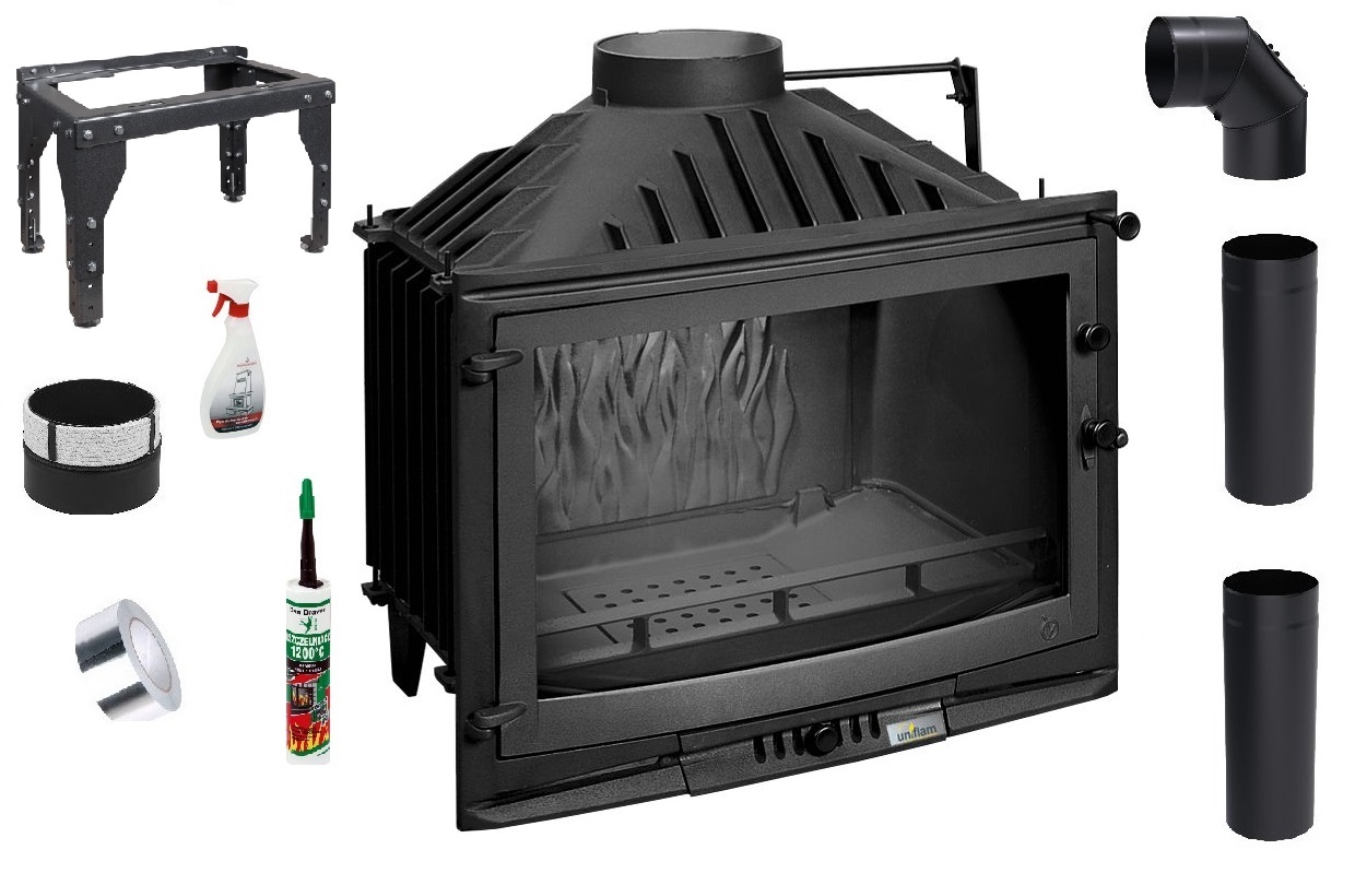 Zestaw 2: Wkład kominkowy powietrzny żeliwny UNIFLAM 700 Selenic ECO z szybrem, moc 10kw + akcesoria