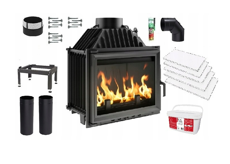 Zestaw 2: Wkład kominkowy powietrzny żeliwny z szybrem Maja, wylot spalin fi 200, moc 8kw + akcesoria